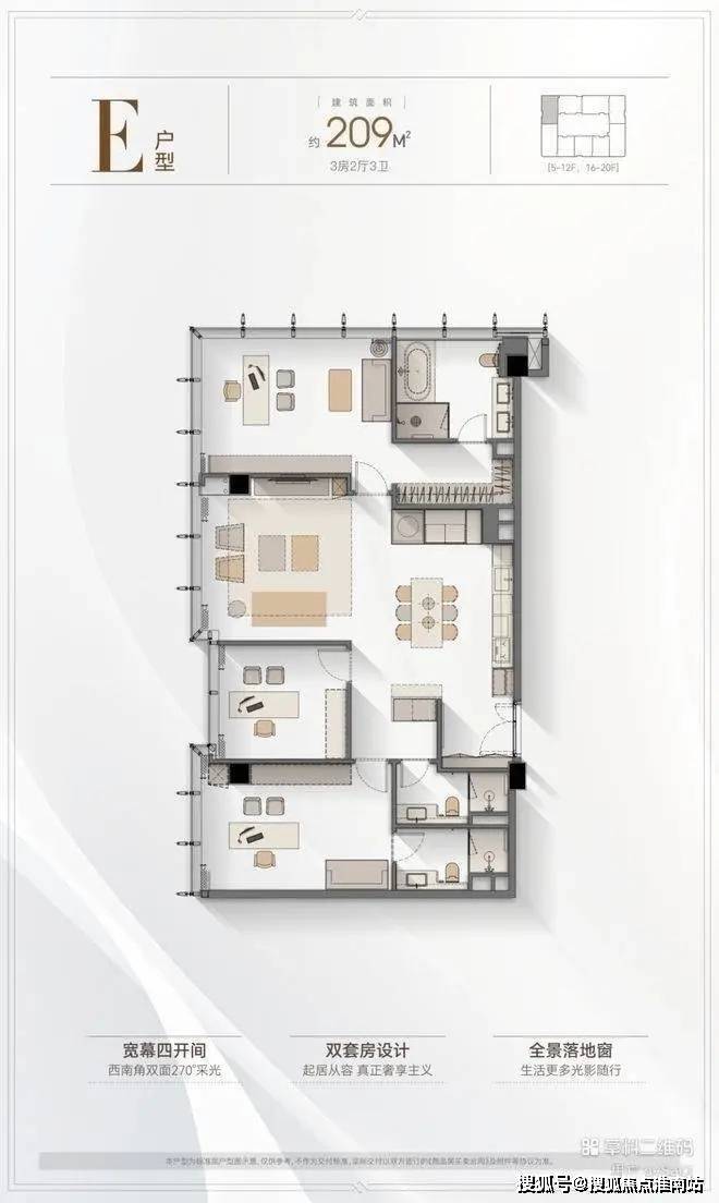 5️⃣户型优势:4.2米层高,全落地窗设计,多套房设计满足三代同堂