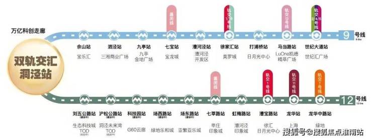 项目距离地铁9号线 洞泾站直线仅约400米!12号线(在建)洞泾站也仅约500米,是真正意义上的“ 双轨交正地铁盘”!