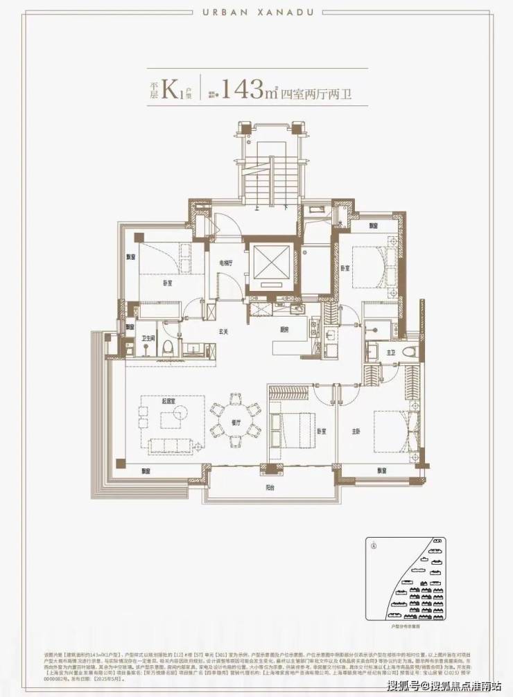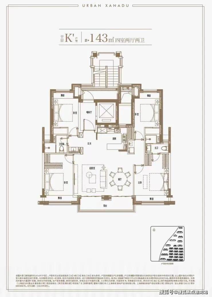 建面约142㎡下叠户型,一层是会客区,客餐厅大横厅设计,将生活的奢度打开!