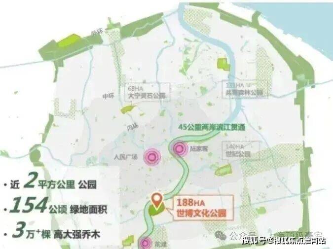 后滩九宫格北接世博文化公园、南邻前滩,西面隔黄浦江就是徐汇滨江,区位非常好,且是黄浦江核心段硕果仅存的滨江住宅区。