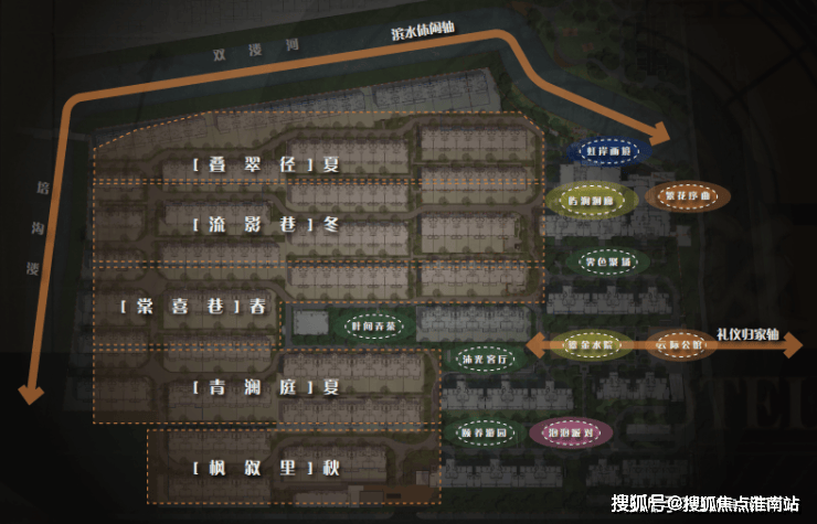 项目利用滨水环绕的特点,规划有“十大剧场、五大主题街巷”的景观概念,为业主带来尊崇感、仪式感兼备的归家体验。
