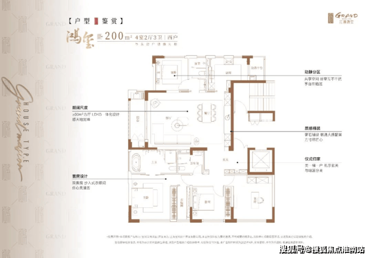 江湾鸿玺主推建面约200㎡豪装大4房,仅有32席位,总价在1500万级,或是中环旁错过不再有的“一步到位”纯改善产品。