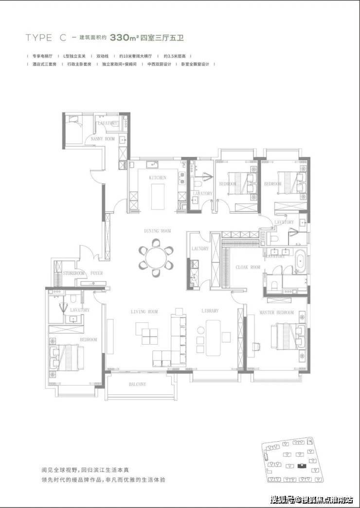 建面约206-330㎡大平层收官发售均价约12万/㎡可直接选,都还是准一梯一户的设计。
