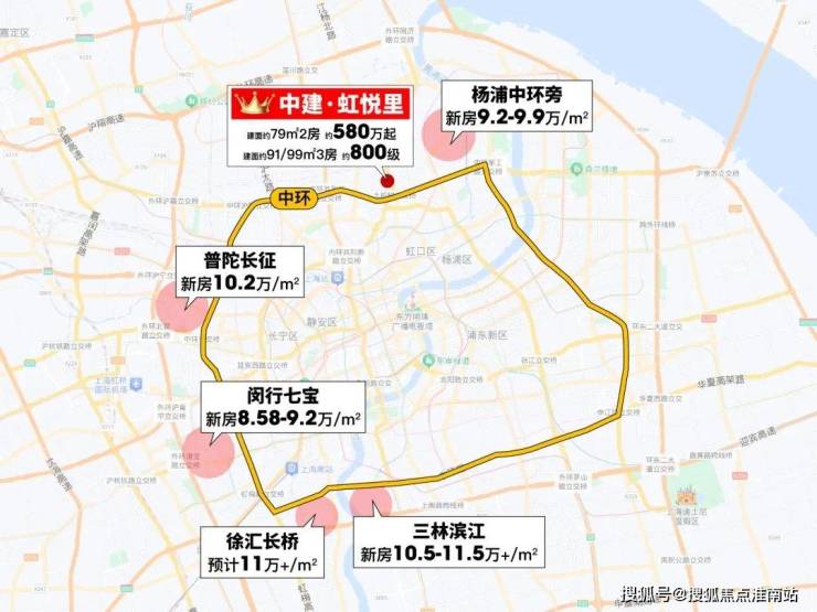 同环线普陀长征新房均价10.2万/㎡;闵行七宝也已8.58-9.2万/㎡。