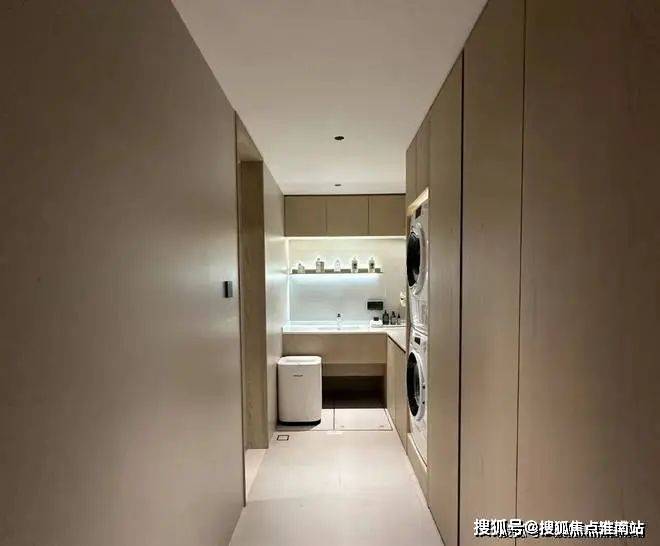 靠户型东侧,样板间设计了一个独立衣帽间和主卧套房的第二个卫浴空间。