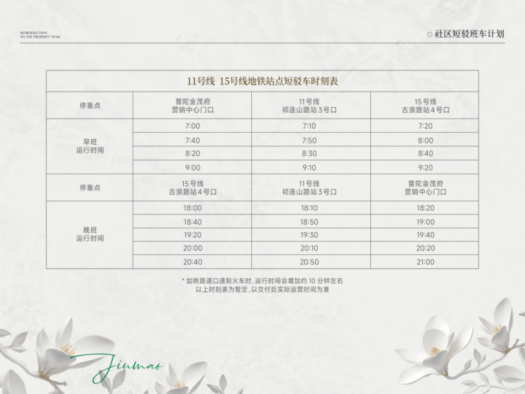 项目安排了地铁接驳车,高峰期10分钟一班,固定运行。