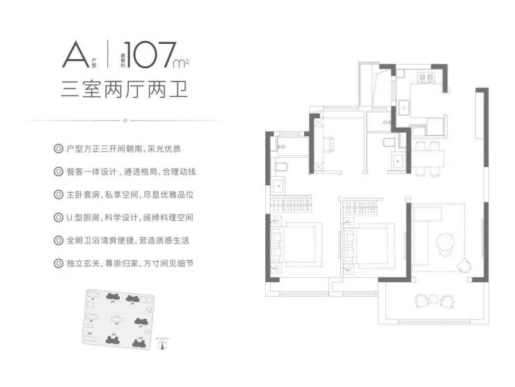 主力是建面约107㎡三房。