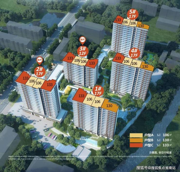 户型上规划有三款,建面约106㎡三房两卫和约130、133㎡四房两卫,满足刚需和周边地缘购房者的改善需求。