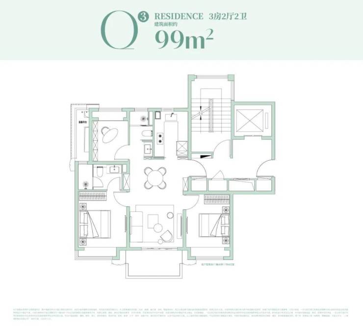 其中建面约99㎡3房在15#,双核心优势加持: