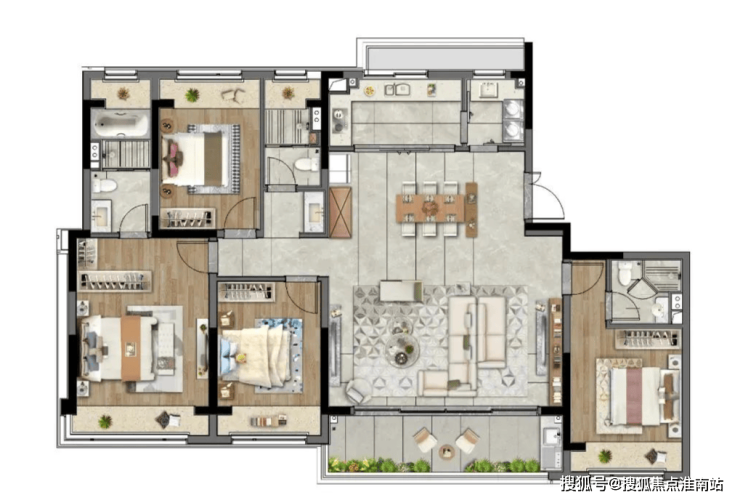 采用围合式排布格局,社区中心围合超 14000㎡中央双园,设置童梦王国、户外会客、阳光派对、活力剧场、冥思广场等休闲场所。