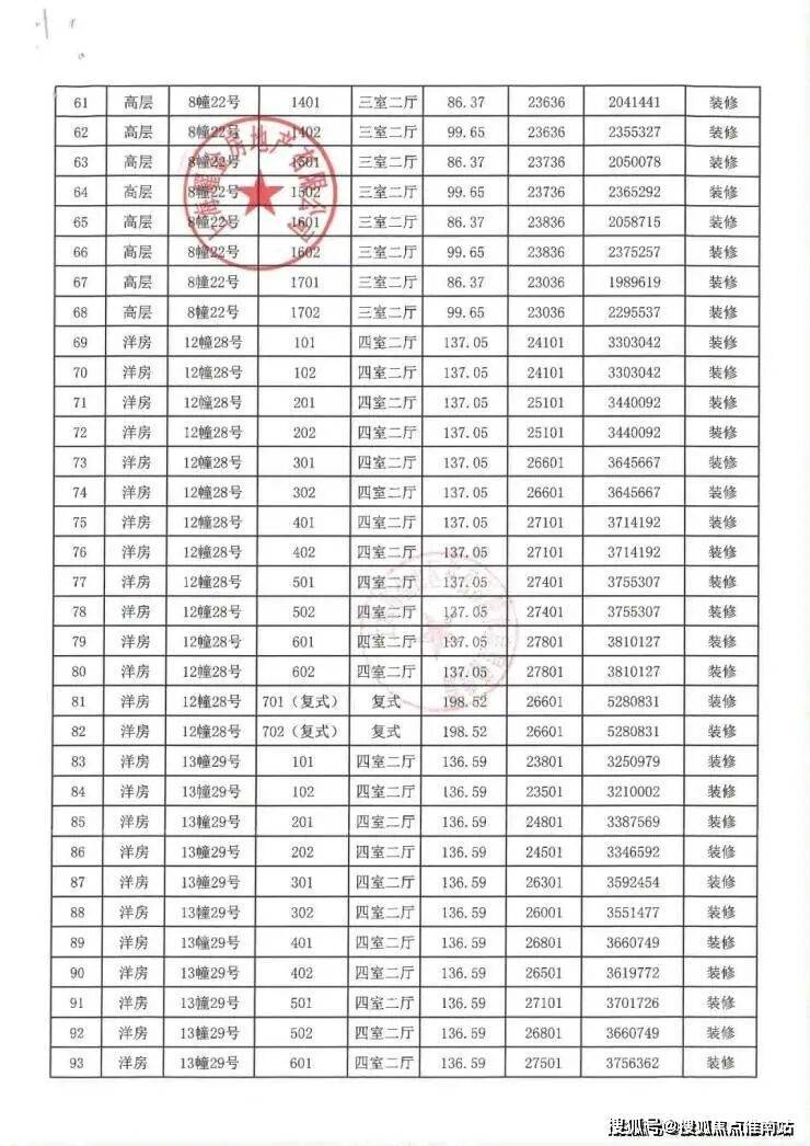 一房一价表:
