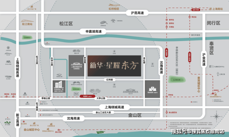 双轨加持——距离金山铁路亭林站约2.5km,5站到上海南站,轨交南枫线(规划)串联上海南部客流主动脉