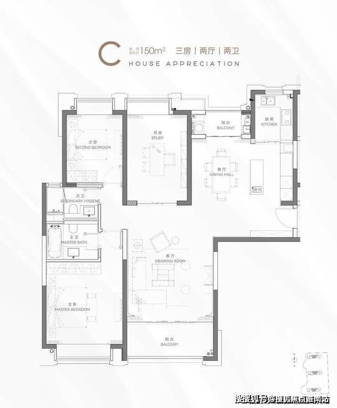 建面约150㎡3房2厅2卫▼