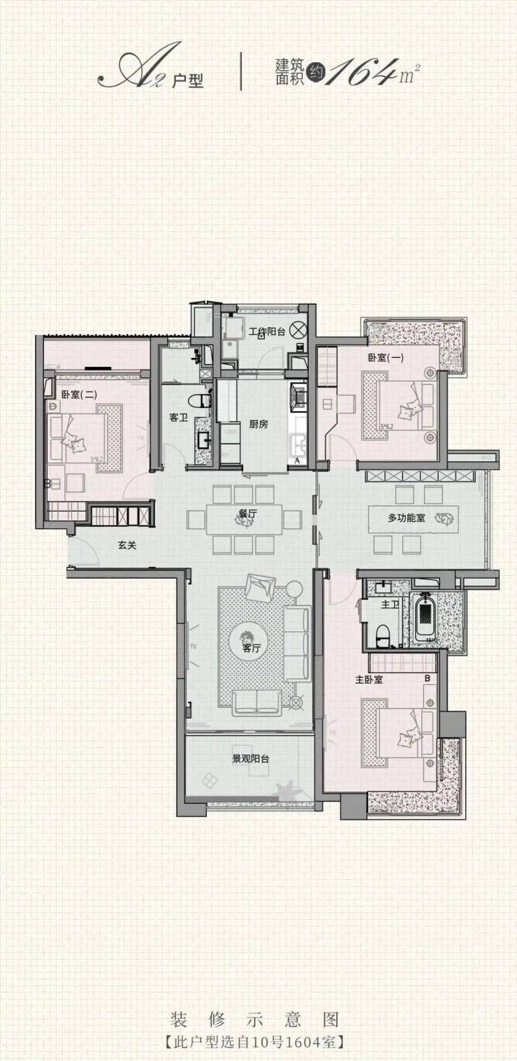 建面约164㎡灵动四房户型