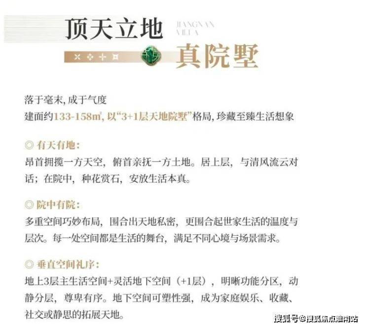 项目规划28幢住宅,包括25幢3层联排别墅和3幢10层科技洋房,总户数236户,车位比1:1.69。产品面积段为联排133-158㎡、洋房123㎡,全装修交付标准2000元/㎡起。联排别墅首层挑空3.4米,二、三层层高3米;洋房标准层层高3米,四开间朝南设计。