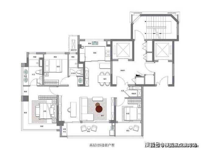 臻装高层建筑面积约125-139㎡(以139㎡户型为例) :诠释“实用主义奢华”。
