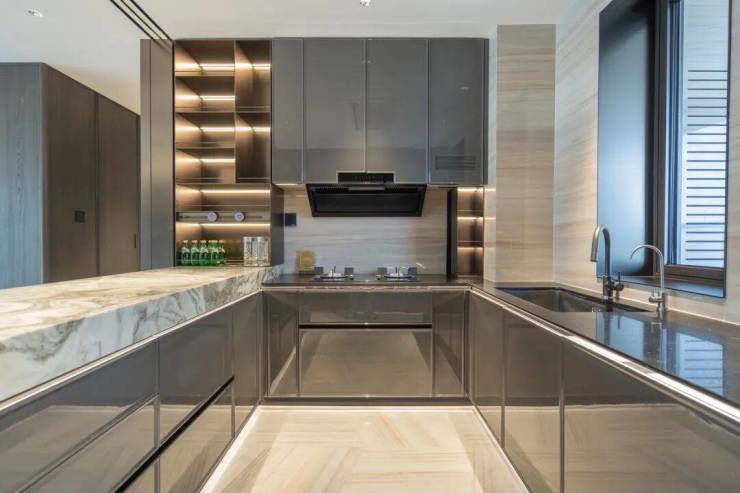 增加了全屋净软水系统,四重过滤,24小时全屋净水软水;下拉式拉篮、抽拉置物架,大量细节处的小收纳巧思。