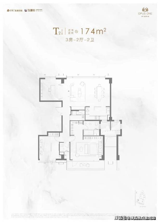⑥ 174m²客厅8.2米/奢侈三房/主卧开间5.7米/最小卧室约14m²