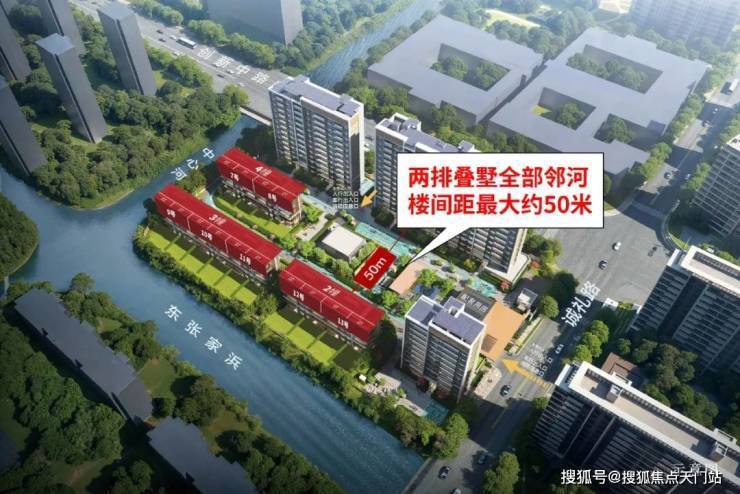 地块整体方正,北侧仅规划两栋高层,将大部分空间留给叠墅;不仅让叠墅最大楼间距达约50米,保障了采光与私密性,还依托双水系资源,让两排叠墅均邻河而建,其中一幢更是双面邻河,景观优势拉满,进一步放大了叠墅的居住舒适度。