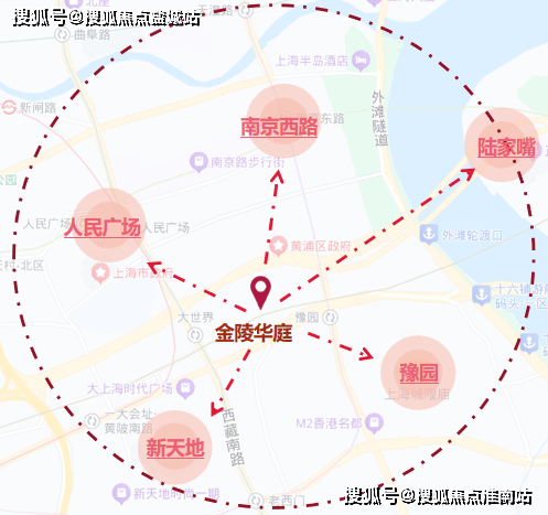 作为上海绝对市心,金陵华庭2公里生活圈囊括人民广场、外滩、新天地、豫园、陆家嘴等上海市地标性区域。