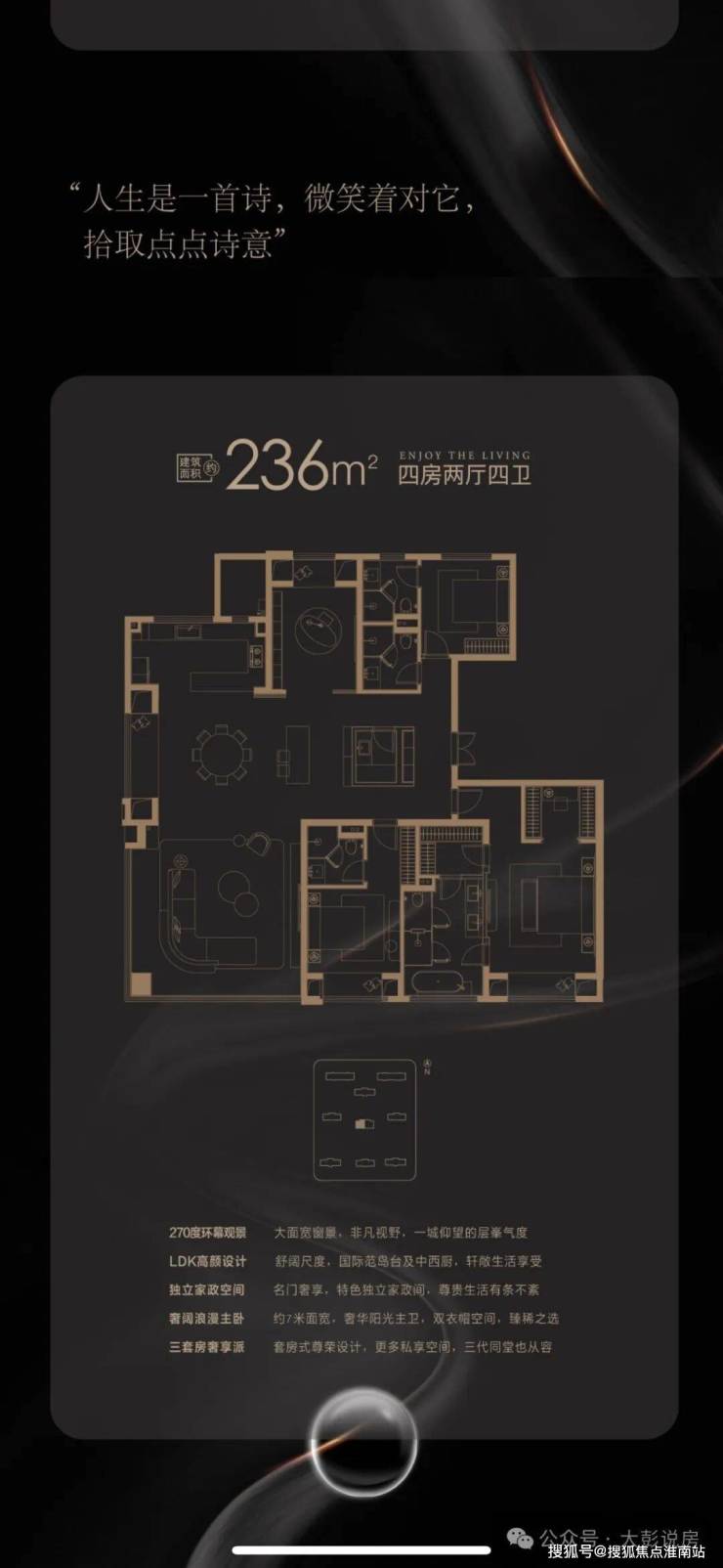148~236 m²全系大平层设计,以奢阔大宅匹配层峯精英,尽显名门本色,鼎奢 236 m²打造 270°环幕转角阳台,成就未来广袤视野。