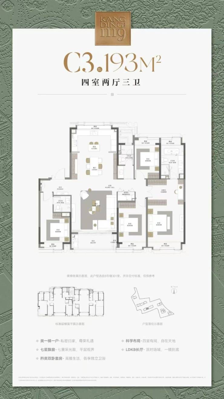 建面约177㎡4房,总价约2800-3200万。
