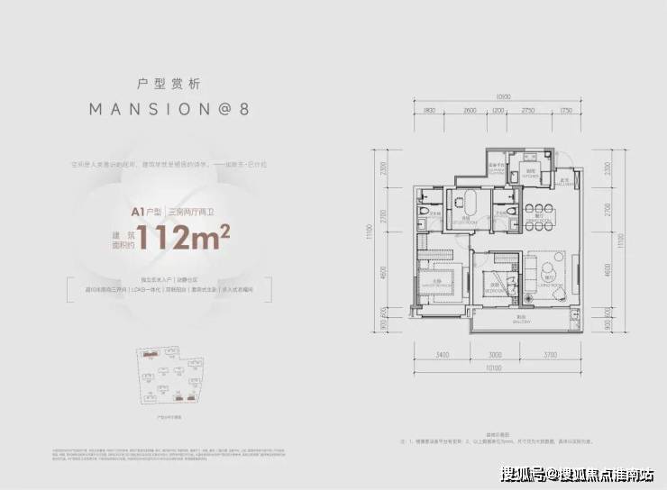 建面约112方三房两卫: