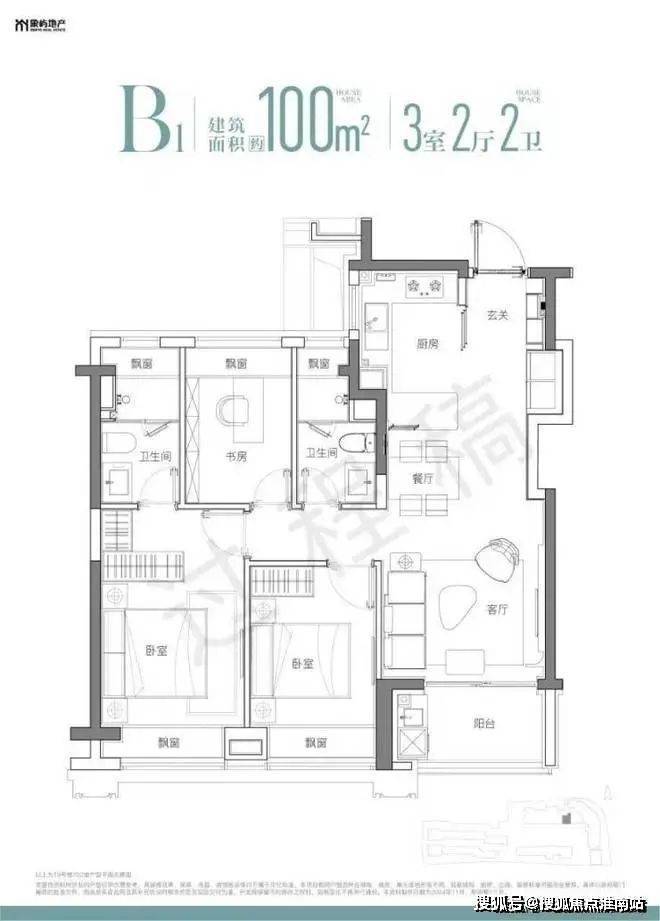 建面约100㎡高层3房共132套