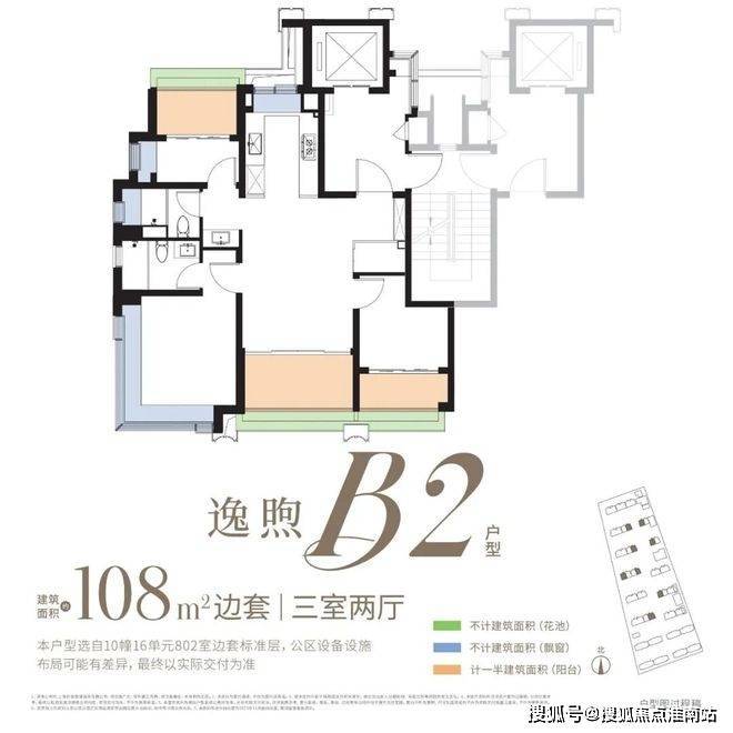 约98㎡3房:类一梯一户、全屋飘窗为标配,双阳台+花池是核心亮点(市面双阳台户型起步多为约110㎡),整体附赠约23㎡,是罕见的高实得率精致户型。