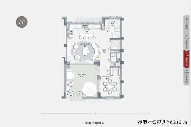 :容积率仅1.35,纯墅区设计,建筑限高12米,总户数70套,涵盖联排、叠加两类产品,建面约185-305㎡,联排总价约4700-6400万级,叠加总价约2700万起