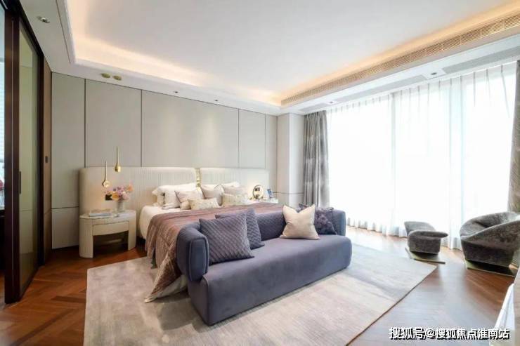 建筑设计:特邀“CREDAWARD地产设计大奖”得主SEA东南担纲设计,结合项目的地块价值和产品迭代的定位,立面采用灰色大面积玻璃幕墙加铝板设计,通过大尺度的窗墙比,营造270°的巨幕景观视野和空间采光体验。