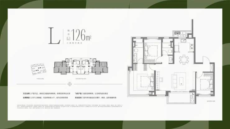 建面约89、103、126m²部分户型设计了270°全景视野的L型飘窗;建面约99㎡户型设计了转角阳台,引园入室,景观视野更震撼,带来IMAX级视觉体验!