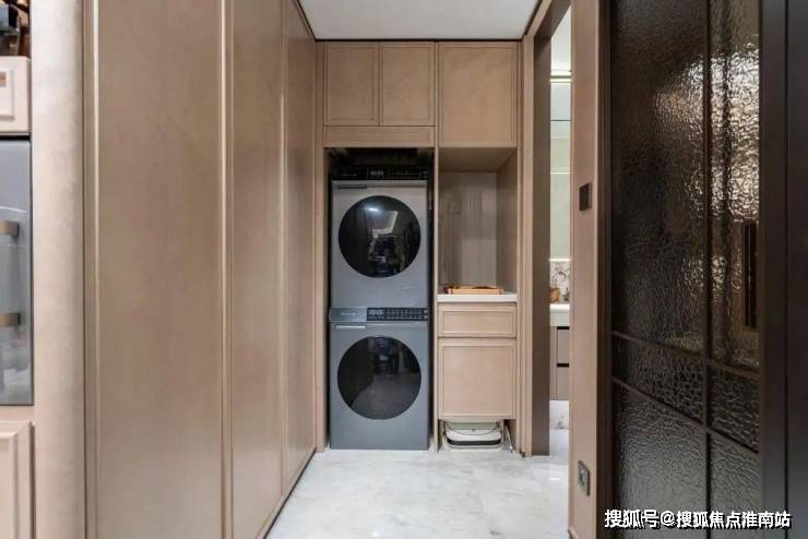 家政效率被进一步前置到动线里。137㎡户型把独立洗烘间与卫生间紧密排布,洗澡—更衣—洗烘是一条顺手直线,预留操作台与“扫地机器人车位”,把琐碎在源头解决。