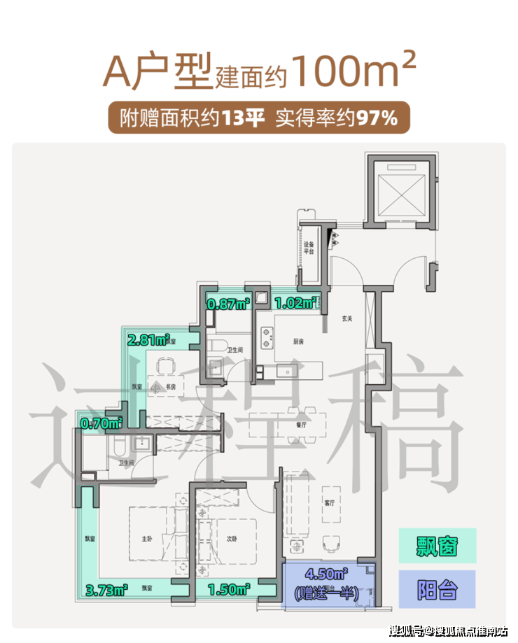 全屋7飘窗+半封阳台,赠送面积近20㎡,实得率约94%。