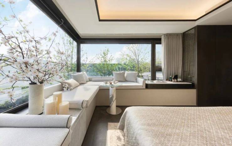 项目本次的边套设计了大量的飘窗、转角飘窗、主卧270度落地窗等设计,整个立面运用了大量的玻璃,构建出了非常极致的窗墙比。