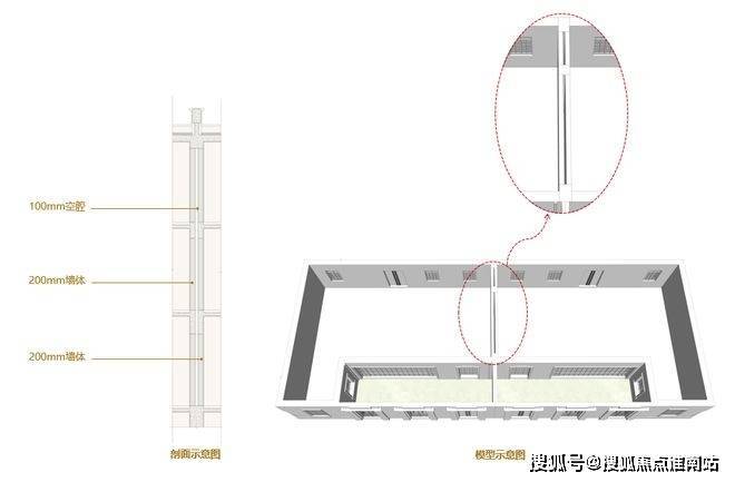 【静谧墅藏】独创双层分户墙隔音技术,外墙&楼板约200mm厚度,首层北侧和山墙面开窗外置百叶。