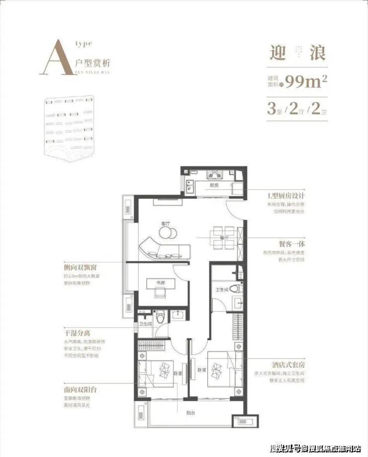 【高层99平】约6.1m大面宽双阳台,近6m客厅观海飘窗,奢享270º三面海景,主卧套房设计,N+1灵动空间!