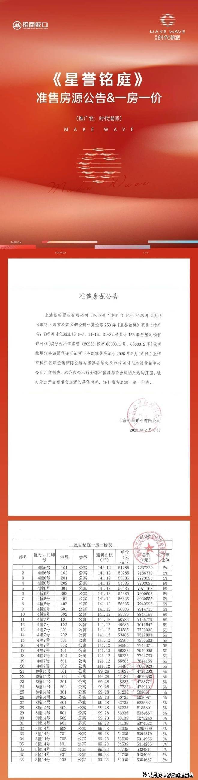 上海松江招商时代潮派售楼处电话☎:400-881-8994(预约看房热线)产品方面,【招商时代潮派】加推153套建面约99-143㎡全装修3-4房,均价52377元/㎡,2月8号认购。