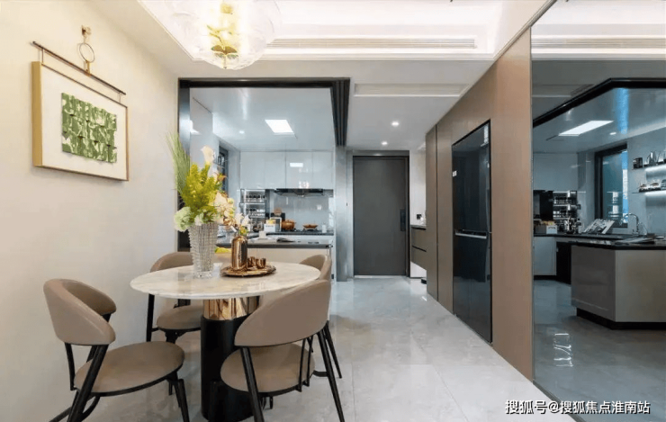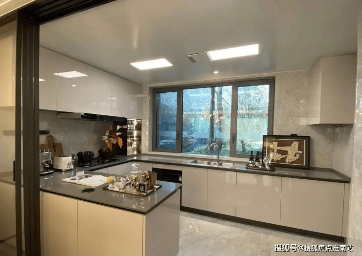 仔细看,厨房的岛台上还放置了一个 升降插座! 现在看让人眼前一亮,而未来的生活你会深深感受到它有多么实用!