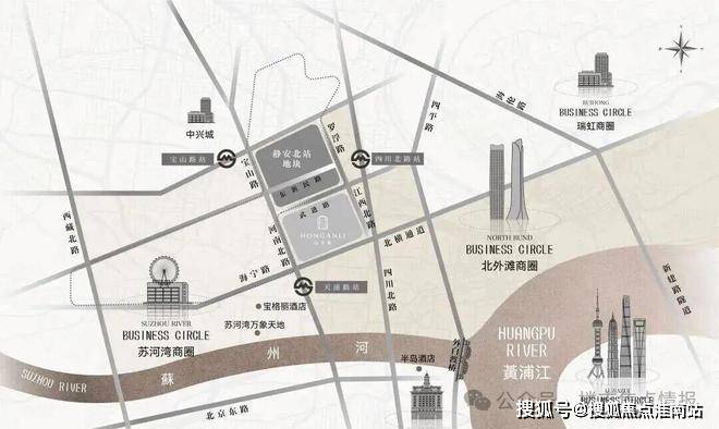 仅从图上看,该地块直线距苏州河约1公里,直线距外滩约1.4公里,直线距北外滩约1.7公里,直线距3/4号线宝山路站约300米,直线距10号线四川北路站约560米,区位优势明显。