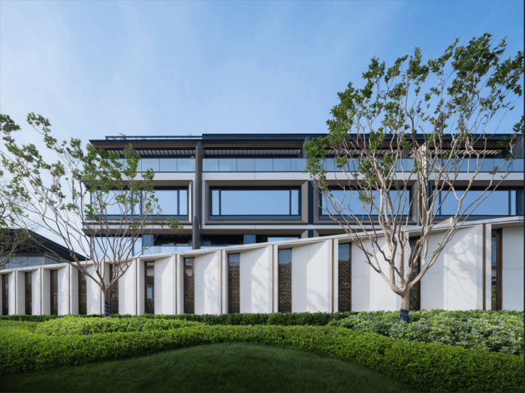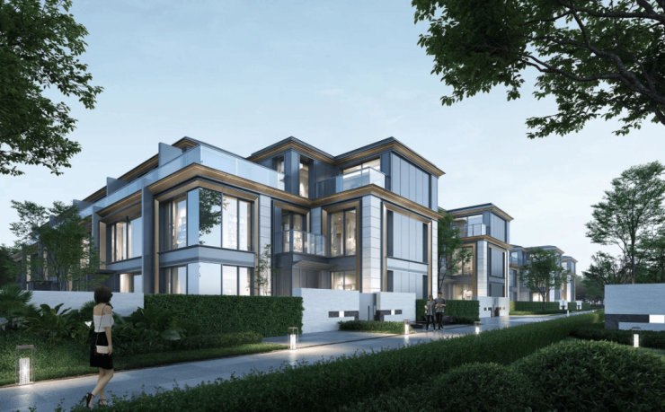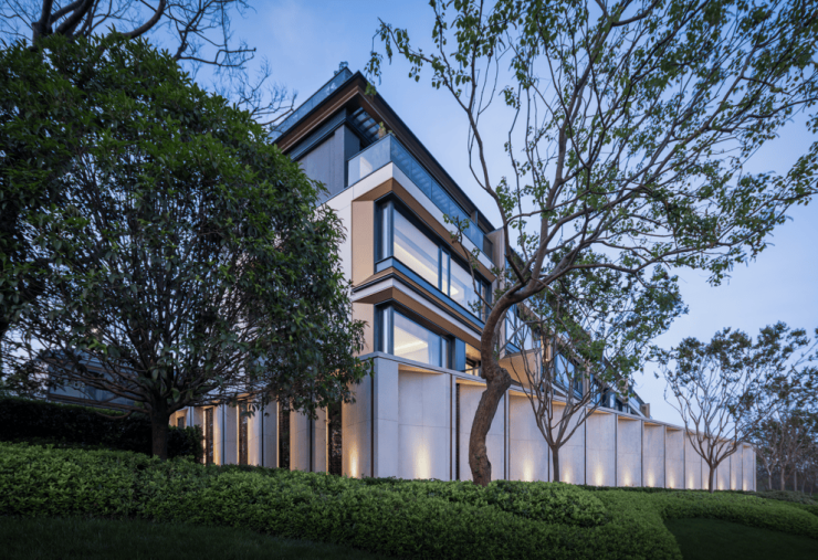 外立面方面,项目汲取广富林文化精髓再造东方屋宇,采用银灰色及香槟色铝板和涂料、渐暖色石材(仅联排)的组合,带来厚重与轻盈的平衡,在彰显文化豪宅的同时又包含国际风骨,整体呈现诗意东方之美。