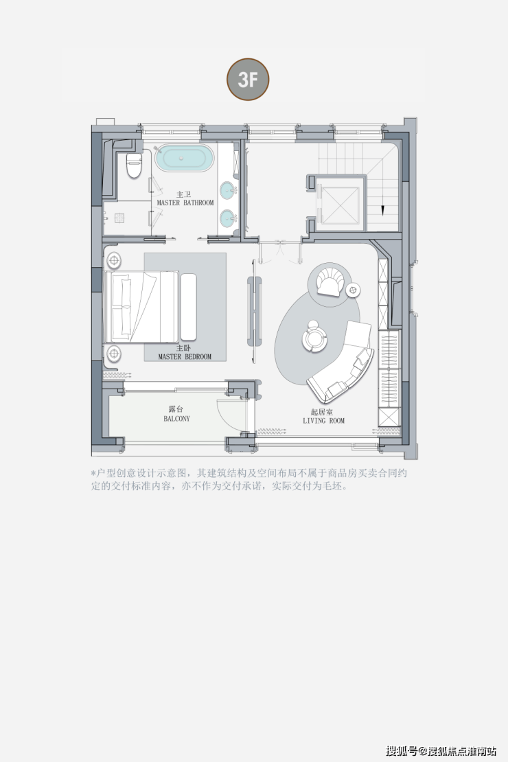 主卧套房通过挑空光影与优雅弧线,实现了私域与自由的完美和解; 奢阔露台成为连接室内外的诗意过渡。