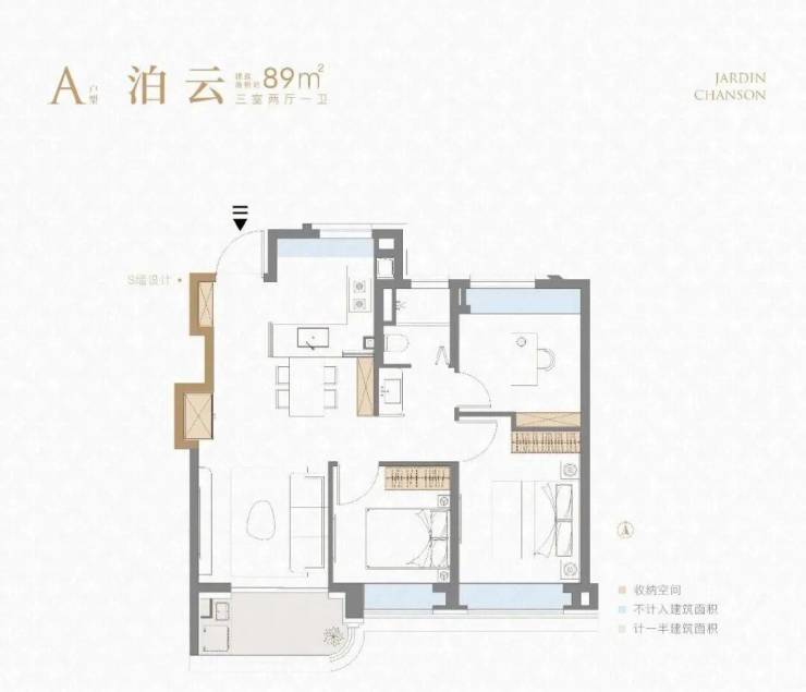 89㎡三房两厅一卫:三开间朝南,采光优越,刚需上车优选