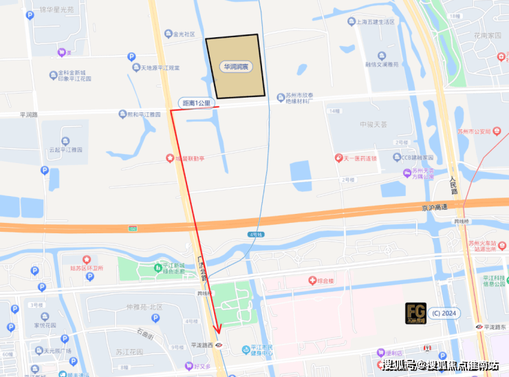 距离苏州最好的综合三甲医院,苏大附一院距离约1.2公里,位置还算恰到好处。