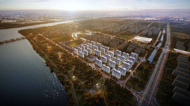 另外,项目还打造了一纵两横森氧艺境城市社区,其中涵盖了约400米无界宽景自然艺术轴、约460米流动的江之界森林界面以及约240米社区街心焕活轴。