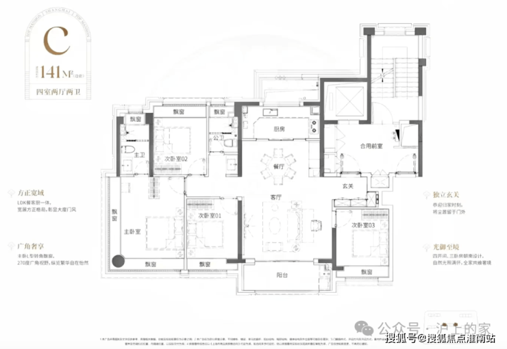 比起市面上普遍的三开间朝南动静分区户型,该户型至少有3大爆点: