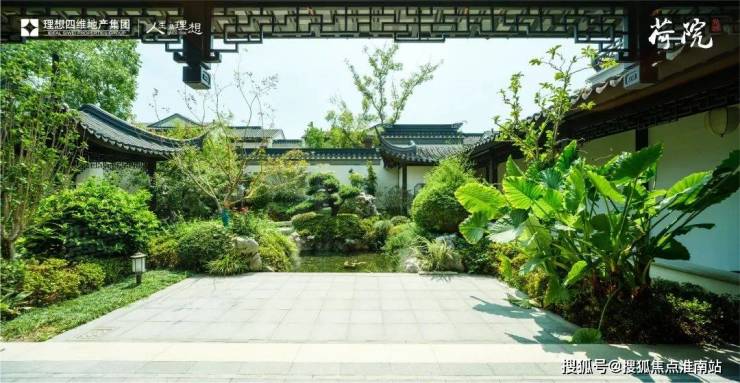 杭州城之前的合院盘,一般只有一个中心庭院。但理想荷院东区、西区各有2个中心庭院。芝花海棠的花街铺地上,老树婆娑、山石嶙峋、叠水飞瀑,整个园区单太湖石就用了约1100吨。