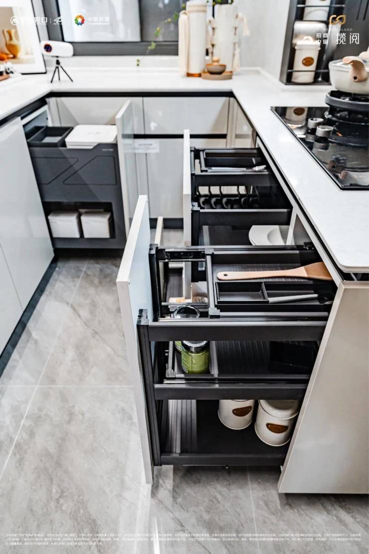 与此同时,项目在智能化方面下足了功夫,油烟机感应触控,智能化的同时更注重居家的安全。