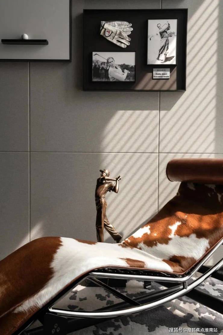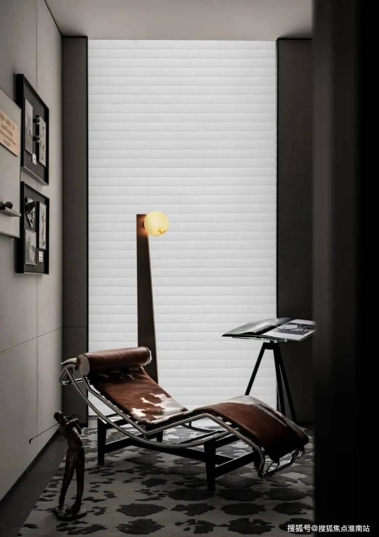 同样令人放松的,还有书房,与其它空间相比,这里的光影更加委婉动人,在空间的细腻包裹之下,是沉稳的安全感,地毯黑白相间的奶牛配色如同安静的图腾,让人感受大自然原始的艺术感。一把躺椅,一本书,成为居者的安心之所。