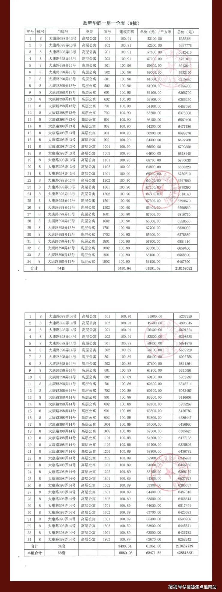 大华公园柏翠项目一房一价表▼